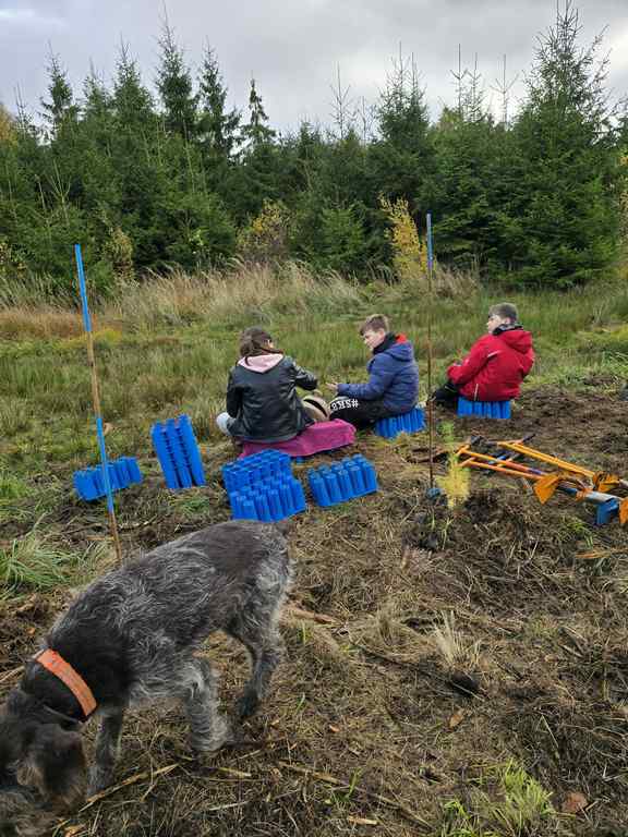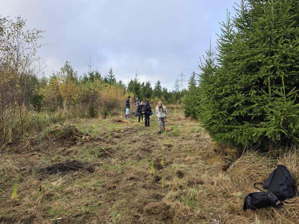 Bevor das Abenteuer begann, gab es in der Aula der Schule reichlich Hintergrundwissen. Die Schülerinnen und Schüler lernten, warum der Wald der Region in den vergangenen Jahren unter Sturmschäden gelitten hat, was junge Bäume für das ökologische Gleichgewicht bedeuten und weshalb Mischwälder heute wichtiger sind denn je. Das Pflanzgebiet an der Kohlenstraße wurde dank der bereitgestellten GPS-Daten zielsicher erreicht. Hier wartete Frau Gohde, die alle Aktivisten mit einem Spaziergang zu den bereitgelegten Pflanzspaten und die jungen Setzlinge führte. 270 an der Zahl, je zur Hälfte Buchen und Lärchen, finanziert von der Bürgerinitiative für Umwelt- und Naturschutz. Das Busunternehmen Sallwey hatte die sichere An- und Abreise der Gruppe unentgeltlich übernommen. Dafür gab es Beifall für den Busfahrer. Bevor die Pflanzspaten zum Einsatz kamen, führte Försterin Susanne Gohde in die Grundlagen des Aufforstens ein. Farbmarkierungen machten klar, welcher Baum, mit welchem Abstand gepflanzt werden musste. Nach einer Vorführung zum Einsatz des Pflanzspaten ging es ans eigentliche Pflanzen.