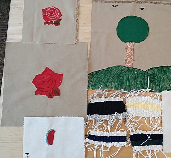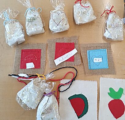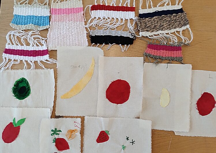 Applikation: Duftkissen, bestickt und mit Handstichen zusammengenäht (Jahrgangsstufe 5); Applikation: Früchte und kleine Webteppiche (Jahrgangsstufe 6)